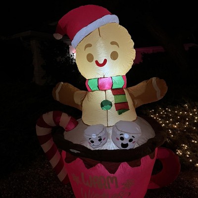 Joyfy 6 FT Christmas Inflatables Outdoor Decorations, Inflatable Gingerbread Man in Hot Cocoa Mug with LEDs for Xmas Party Indoor Outdoor Yard Decor