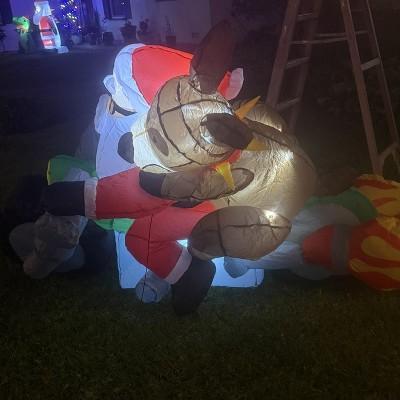 Does not fully inflate and looks like the back tire is flat with a droopy reindeer.