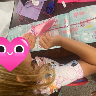What a wonderful first sewing experience my granddaughters had with this sewing kit. The kit contained many different projects each one as adorable as the next. All of the materials were durable and well crafted. Prepunched holes, large needles and high quality felt allowed the children ages five and seven to work independently on their sewing projects. They were very proud of the decorative unicorn pillow and cat purse that they sewed all by themselves. Since the kit includes several projects we look forward to creating other designs. This sewing kit would be a great gift for children ages five and up.