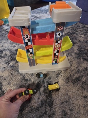My 17 month old son really enjoys playing with this. It is small and plastic but durable and worth the money you pay! My son is learning colors and action words - he loves to put the car on the top then he says 隆掳ready set隆颅. Go go go隆卤 or he counts the cars as the go