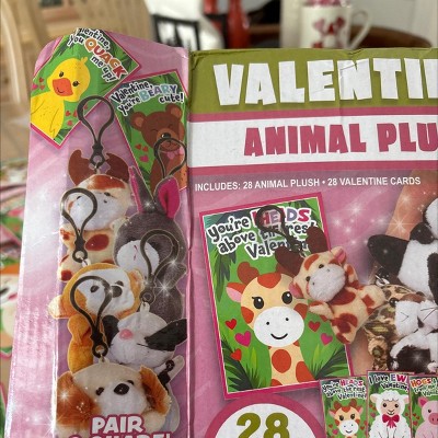 Joyfy 28 Pcs Valentines Day Gifts Cards with Animal Plush Toy KeyChain for Kids, Fidget Toy for Valentine's Party Favor and Classroom Exchange Gifts