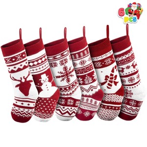 Joyfy 6 Pcs 18" Christmas Stockings, Large Rustic Yarn Xmas Knit Stockings for Christmas Party Holiday Decoration Tree Present Holders