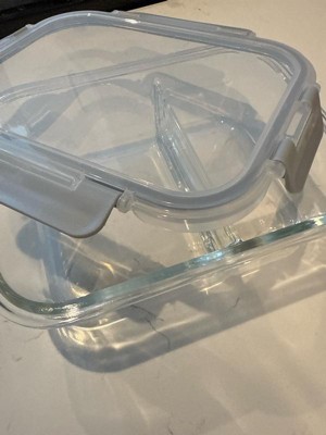 [This review was collected as part of a promotion.] These are such nice portion controlled glass containers. The lids are a bit tough to snap on, but they are leakproof once one. They’ve held up through several uses so far. I really don’t like that the glass between portions doesn’t come all the way to the top, therefore if tilted, food from either portion will get into the other. I wish they had a rubber coating or something on the bottom so they didn’t easy slide around in my glass refrigerator shelves also.