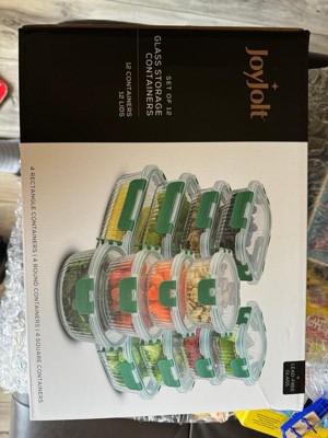 JoyJolt 24 Piece Fluted Glass Food Storage Containers with Leakproof Lids Set - Green