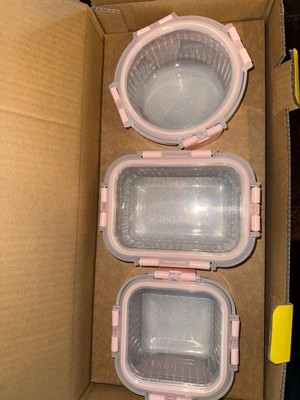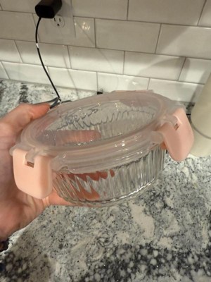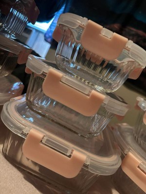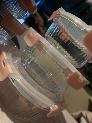 [This review was collected as part of a promotion.] First off, these are adorable. The light pink and the fluted glass are so perfect. They are glass but sturdy with plastic airtight waterproof lids. I have stored leftovers, salads, fruit and jello in these so far and they didn’t disappoint. I even filled one with water to test the leakproof lid and not a drop came out. You can stack them inside each other for better storage. I also like how you can see all the way through the lids and containers. Very cool. Will probably buy and recommend these to others in the future.