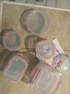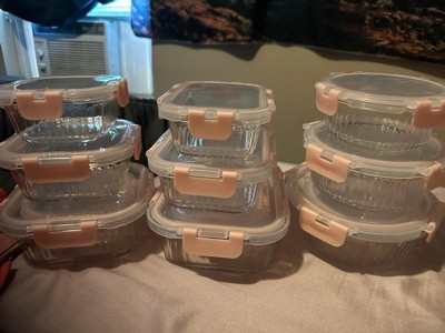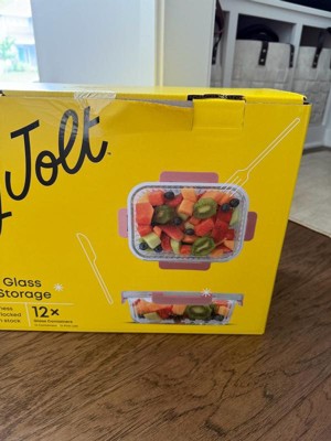 JoyJolt 24 Piece Fluted Glass Food Storage Containers with Leakproof Lids Set - Pink