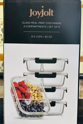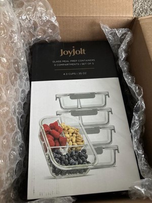 - AVAILABLE IN BLACK IN GREY: This 5pc 3 part compartment container set is available in black or grey lids, and like all JoyJolt Glassware, your sealed containers for food set will arrive bubble wrapped, boxed
