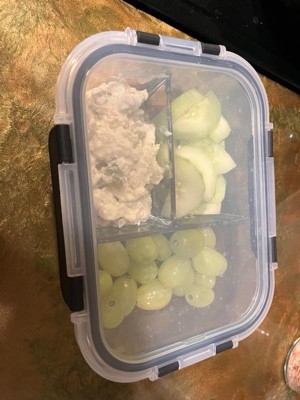 [This review was collected as part of a promotion.] This is a nice little sectional container. The glass feels high quality and the sections are pretty versatile sizes. I’m not huge on meal prepping, but I usually take leftovers in for lunch so it’s nice to have the ability to separate food items. I’ve had no issues getting these clean in our dishwasher. I would have given 4-5 stars, but the seal doesn’t seem airtight. After eating my lunch, I rinsed the empty container and threw it in my bag. Later I realized that the small amount of water in the container had leaked out. I’m still going to use this and just be careful to keep it upright/avoid storing liquids.