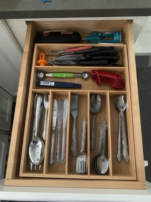 [This review was collected as part of a promotion.] This bamboo organizer is really nice and high quality. It fit perfectly into my flatware drawer and had enough slots for all my knives, spoons, forks and specialty knives.