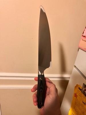 [This review was collected as part of a promotion.] This knife is well balanced and very easy to handle. I love this chef’s knife and case. It makes it easy to take to my mother in laws house when I cook over there.