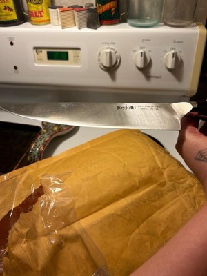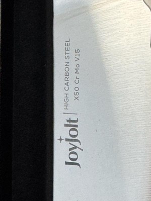 [This review was collected as part of a promotion.] I received the 8 inch Chef Knife from JoyJolt and Influenster for free in exchange for my honest review. The knife is made of carbon steel and comes in a beautiful box. The handle is shaped great and fits my hand perfectly. I use it cut up cucumbers and peppers for my kids lunches. My new favorite knife. It easily cuts, slices and dices.