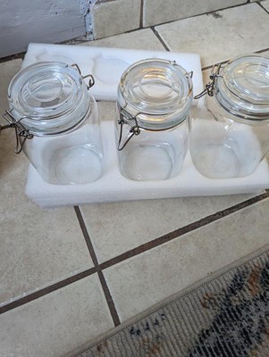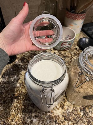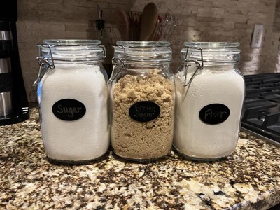 [This review was collected as part of a promotion.] Love this trio. 50oz may sounds like a lot, but I feel good about placing this size on my counter tops. I’m using 2 canisters at my coffee station for sugar and cream. The canisters are clear glass with a silver metal clasp system and gasket (set comes with 3 spare gaskets!) The canisters are square with rounded soft edges. They can be nettled up against each other and not have big gaps of space between canisters. The set also comes with 6 chalkboard style labels that you can affix to the canisters if desired. I like to hand wash my glass canisters like this, but they are dishwasher safe. I just recommend removing the lid by pinching in the metal holding the lid to the jar before placing it in the dishwasher. This set would be compatible with any other glass jars.