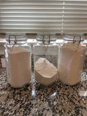 [This review was collected as part of a promotion.] Love them! These replaced my plastic containers which I’ve been wanting to get rid of for a while now. Glass is definitely better option if you are trying to limit plastic exposure in your home! The lids seal very tight and they washed great in the dishwasher. Extra gaskets and labels are also included. These 32oz containers fit a 5lb bag of sugar and almost a whole 5lb bag of flour.