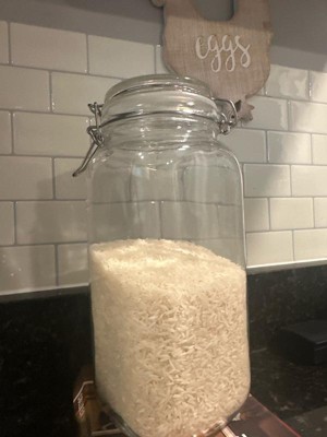 [This review was collected as part of a promotion.] I am obsessed with these jar containers! I have been looking for something simple to hold my dry goods in the kitchen, and this was perfect. They hold quite a bit and are easy to open and close.