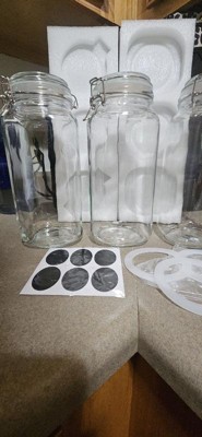 [This review was collected as part of a promotion.] These are great. I really like them. They are glass which is a plus. They are big so that you can fit more food or whatever you like in them. They seal nicely and tightly so your stuff stays fresh. Easy open and close lid. They came with three replacements of seals. They also came with chalkboard stickers so that you can label the jars with what's inside.
