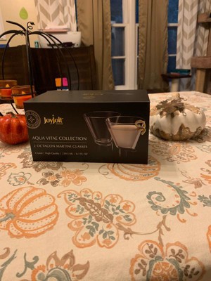 JoyJolt Aqua Vitae Octagon Martini Glass-Set of 2 Crystal Stemless Glasses with Off Set Base-7.2 oz
