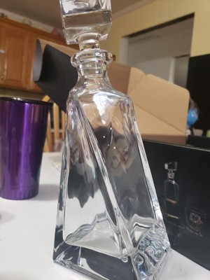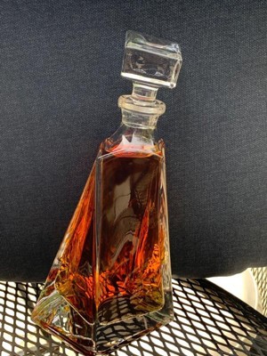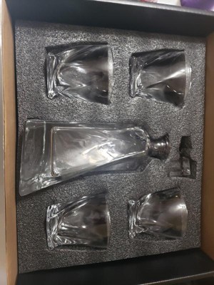 [This review was collected as part of a promotion.] I received this product for free from Influenster and JoyJolt in exchange for my unbiased review. This whiskey decanter set comes with the decanter and four matching glasses. The design itself is interesting, but not a complex design. It evokes artwork based on the Penrose staircase illusion (Ascending and Descending by M.C. Escher specifically). The simplistic design makes it easier to clean compared to one with a lot of sharp edges. The decanter holds ~650ml and the cups hold ~319ml, and when pouring out of the decanter, there is minimal spillage. One thing to note is that the design of the bottle makes it inherently difficult to hold as you pour, which can increase the chance of spilling or dropping the decanter. There are some slight quality control issues, but nothing extreme; When I first opened the box, I noticed that the decanter cap had come loose (presumably during shipping), but there was no damage to any of the glass. All of the cups also had a slight haze to them, as if some residue had been left from the factory, so I would definitely recommend washing everything before first use. There are some small air bubbles in both the decanter and the cups, but for the price point it wasn’t bad and you’d have to go out of your way to see them. Ultimately for the price, this seems to be a very competitive product. I don’t think the slight imperfections (glass bubbles and haze on glass) are serious enough to not recommend this, but people more prone to accidents and dropping things may want to think twice before purchasing, as the design can make it a little challenging to get a solid grip on it.