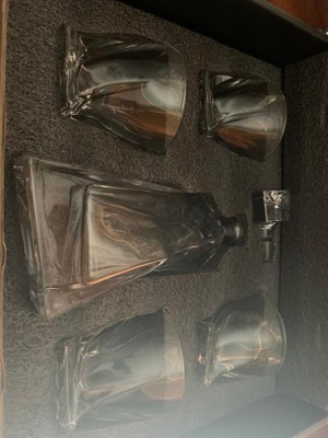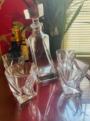 [This review was collected as part of a promotion.] I absolutely love this whiskey 5 piece decanter set! It is so nice looking and the glass is thick and sturdy. The design is nothing like I’ve seen before, it catches the eye and looks so modern. The glasses are nice too. This has received so many compliments and I love having it sit out in my home.