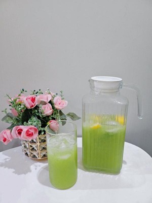 - DISHWASHER SAFE, CRYSTAL CLEAR PITCHER: Even a clear shatter resistant plastic pitcher will eventually warp over time, so instead choose glass jugs that always shine! Our ribbed liquid containers are lead free, and the PP plastic lids are BPA Free. The drink pitcher and lids are all 100% Dishwasher Safe.