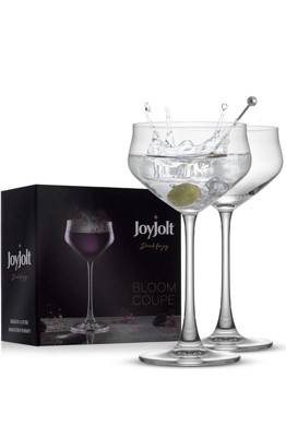 - Universal: Don't settle for less when you can have a mesmerizing high-end bar experience in the comfort of your home. JoyJolt's martini glasses functionality is limited only by your imagination. Try a Margarita, or why not a shaken martini. Our coupe glasses have a unique design that complements every extravagant drink.