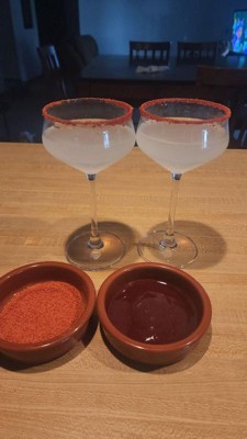 [This review was collected as part of a promotion.] I have not yet to use this product but overall I can already tell I will be enjoying my homemade raspberry lemon martinis! Yes ma’am, very lovely & unique looking glasses:)