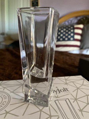 [This review was collected as part of a promotion.] Not only are these shot glasses by Joy Jolt impeccably designed, they are light as well. With the look of crystal the leaded glass makes for an easy glass to freeze for a cooler shot of your favorite adult beverage.
