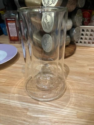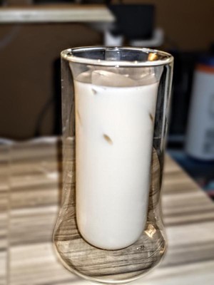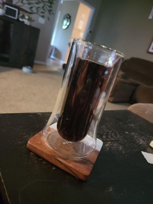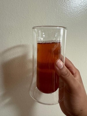 [This review was collected as part of a promotion.] This glasses looked very cool and are very lightweight. Unfortunately one broke just being put down on the table, the inner glass shattered at the bottom. I like that the double wall keeps your hand from warming the drink as you hold it though! I’ve never seen a glass like these before.