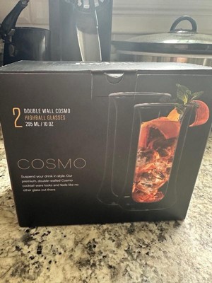 JoyJolt Cosmo Double Wall Highball Glasses – Set of 2 Insulated Glass Tumbler for Cocktails - 10 oz