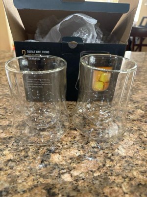 [This review was collected as part of a promotion.] This is the first time I've owned double wall glasses, I make sure when I have guest over to break these out because they are very classy and spark up alot of conversation. These glasses seem very durable and they don't sweat or get my drink warm while holding it. These are my favorite glass ware.