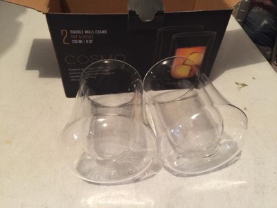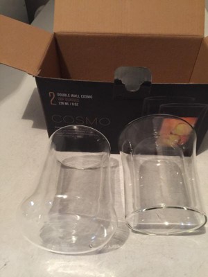 [This review was collected as part of a promotion.] These double walled Cosmo glasses are super classy! We use these actually for any cocktail and have been really pleased! They are great for summer evenings as they don't sweat! They are well made and have a sleek appearance!