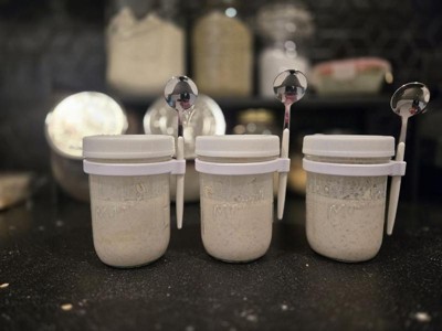 [This review was collected as part of a promotion.] I really like these glass jars for overnight oats! I have been trying new recipes and these are the perfect size. I like that they include the holder for the spoon and are easy to put together for on the go! I wish they came in a 5 pack so that I could make oats for the weekdays.