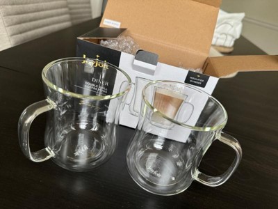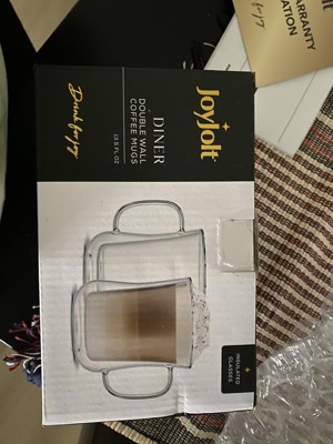 JoyJolt Diner Double Wall Insulated Glasses - 13.5 oz - Set of 2 Insulated Coffee & Tea Glass Mug
