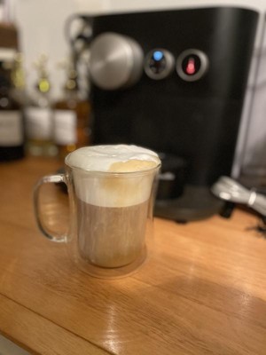 [This review was collected as part of a promotion.] I absolutely love using these double wall cups. I enjoy adding frothed milk to my tea and coffee and it's lovely to see what it looks like through the glass. My drinks stay hot and I can't burn my hands like I typically would. What's not to love! They are microwave and dishwasher safe as an added convenience. My wife loves how much I've been wanting to make her hot drinks with frothed milk.