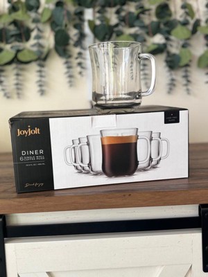 JoyJolt Diner Tea Coffee Mugs Glasses Set - 15.5 oz - Set of 6 Cafe Style Clear Coffee Mug