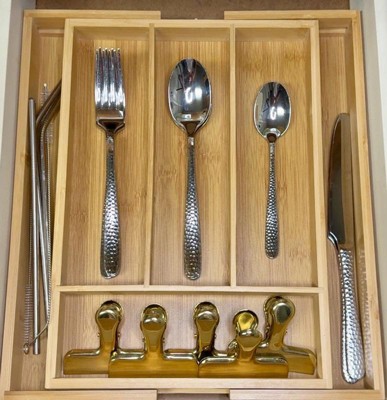 [This review was collected as part of a promotion.] Great sized drawer organizer with expandable functions, sturdy bamboo material. Fits the eco friendly vibe in the house. Allows a lot of space for my utensils. Would recommend!