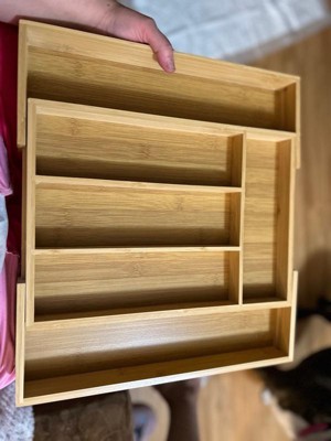 [This review was collected as part of a promotion.] I’m beyond excited about this product! We have a drawer in our kitchen that goes to a built in desk that is shallow. It’s so hard to find organizing compartments short enough to fit. This is perfect and I can customize it to the width I want so it’ll fit all size drawers! Genius! Very sturdy and easy to clean. I prefer bamboo products over plastic.