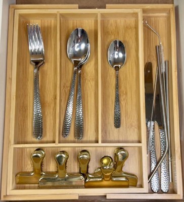 [This review was collected as part of a promotion.] I received a JoyJolt Expandable Bamboo Flatware Organizer in exchange for my honest opinion. The product fits perfectly in a small, size drawer, but it provides a great amount of storage. It feels durable and sturdy. This product is good quality and I would recommend it if you in a need of good utensil organizer.