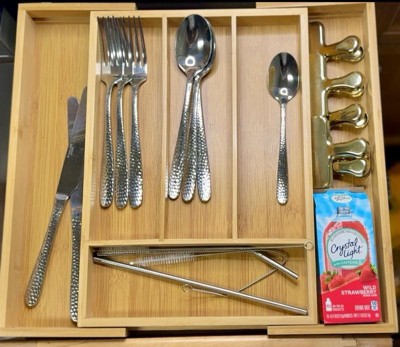 [This review was collected as part of a promotion.] This bamboo flatware organizer is really sturdy and durable. I love the design and the versatility of it that you can adjust the size for your needs.It’s very functional and will hold a lot of flatware.