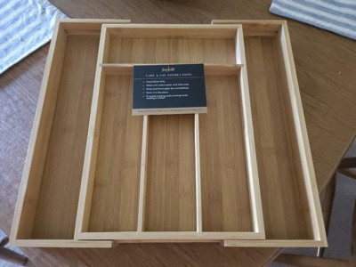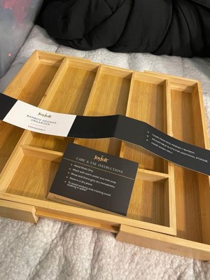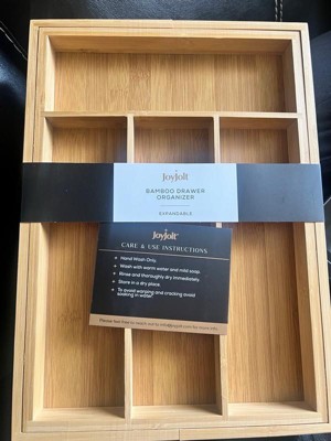 [This review was collected as part of a promotion.] I received a JoyJolt Expandable Bamboo Flatware Organizer in exchange for my honest opinion. The product fits perfectly in a small, size drawer, but it provides a great amount of storage. It feels durable and sturdy. This product is good quality and I would recommend it if you in a need of good utensil organizer.