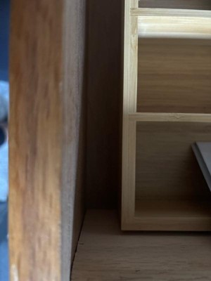 [This review was collected as part of a promotion.] This is cute little organizer for maximizing the storage of items that I frequently use. I didn’t have space in my kitchen but found this a nice home at my desk instead. It’s aesthetic pleasing and easy to use. The quality is okay - some of the wood arrived a little rough, making it easy to get splinters if you’re not careful. The sliding mechanism could be a little smoother but it’s not too bad.