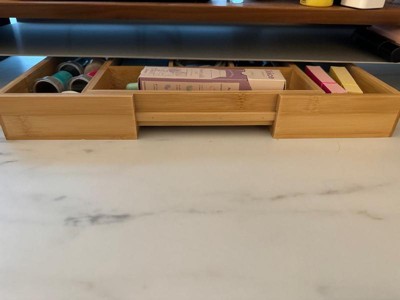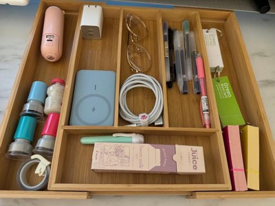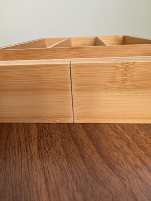 [This review was collected as part of a promotion.] I’m beyond excited about this product! We have a drawer in our kitchen that goes to a built in desk that is shallow. It’s so hard to find organizing compartments short enough to fit. This is perfect and I can customize it to the width I want so it’ll fit all size drawers! Genius! Very sturdy and easy to clean. I prefer bamboo products over plastic.