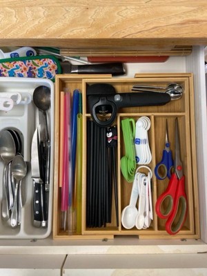 [This review was collected as part of a promotion.] Right out of the package this fit into my utensil kitchen drawer, so easily and quickly. I love how customizable the sizing is so it could fit perfectly in the drawer.
