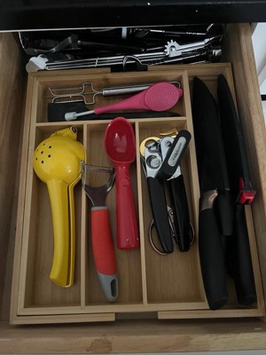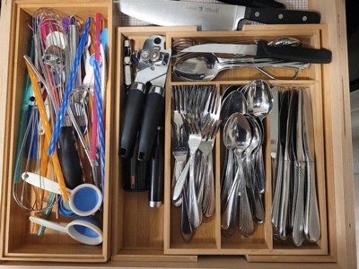 [This review was collected as part of a promotion.] Great sized drawer organizer with expandable functions, sturdy bamboo material. Fits the eco friendly vibe in the house. Allows a lot of space for my utensils. Would recommend!