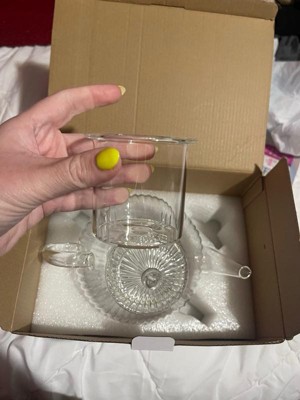 A: Thank you for reaching out! The JoyJolt Fluted Glass Teapot with Tea Infuser has the following dimensions: Length 9.05 inches, Width 6.06 inches, and Height 5.7 inches. It holds 33.8 oz, which is just over 4 standard cups of tea. It’s a full-size teapot and not a mini and definitely not a toy-sized version.