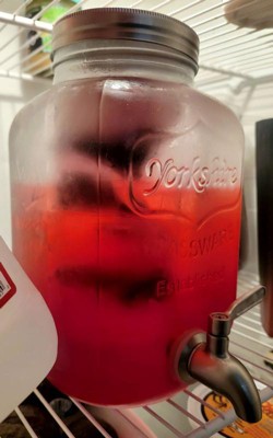 - Fits As A Fridge Drink Dispenser, Too! Sure this one gallon dispenser container may be a large drink dispenser capable of holding 16 cups of refreshing drinks… but it only stands 11" tall and 7" wide and fits in your refrigerator as a fridge water dispenser for milk, juice, or iced tea dispenser.