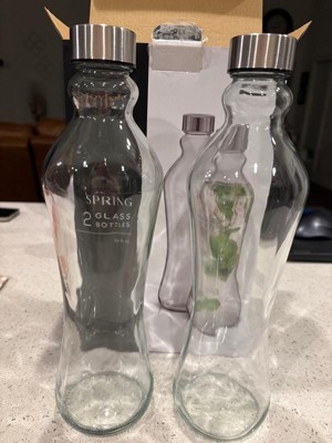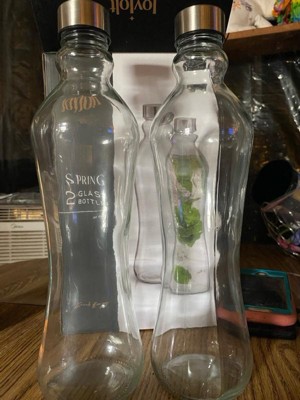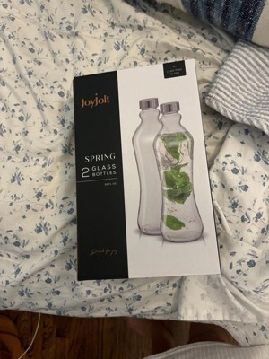 JoyJolt Spring Glass Water Bottles with Stainless Steel Cap - 32 oz - Set of 2