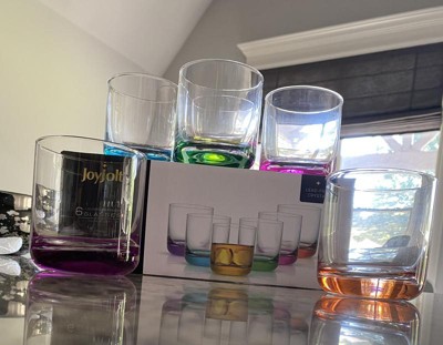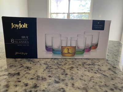 JoyJolt Hue Colored Double Old Fashion Whiskey Glass Tumbler - 10 oz - Set of 6