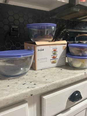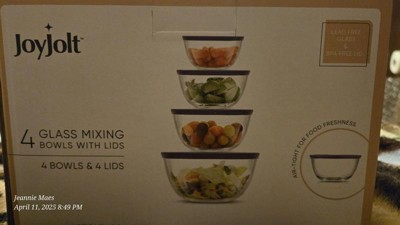 JoyJolt JoyFul 4 Kitchen Glass Food Mixing Bowls With Lids