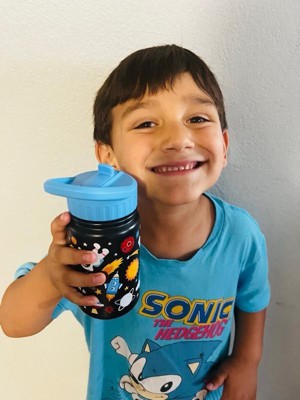 [This review was collected as part of a promotion.] I gave this water bottle to my 4 1/2 year old and he loved it! The bright designs on a dark bottle definitely caught his attention and the leak-proof design caught mine. I also like how they provide you with an extra straw. 10/10 I would recommend!