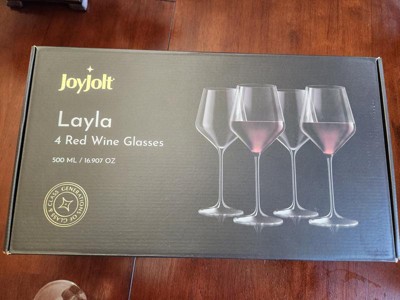 [This review was collected as part of a promotion.] Joyjolt- Layla Red Wine Glasses. Set of 4 Crystal Stemmed Glasses. Layla Red Wine glasses are a very beautiful, light weight, elegant crispy clean crystal glass. Definitely a beautiful glass to dress up our Christmas table